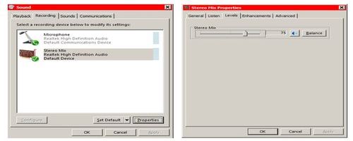 In the control panel you choose SOUND and RECORDING. If you use XP you may also need to activate Stereo Mix.